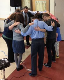 Contact the pastor and he will speak and pray with you any time.